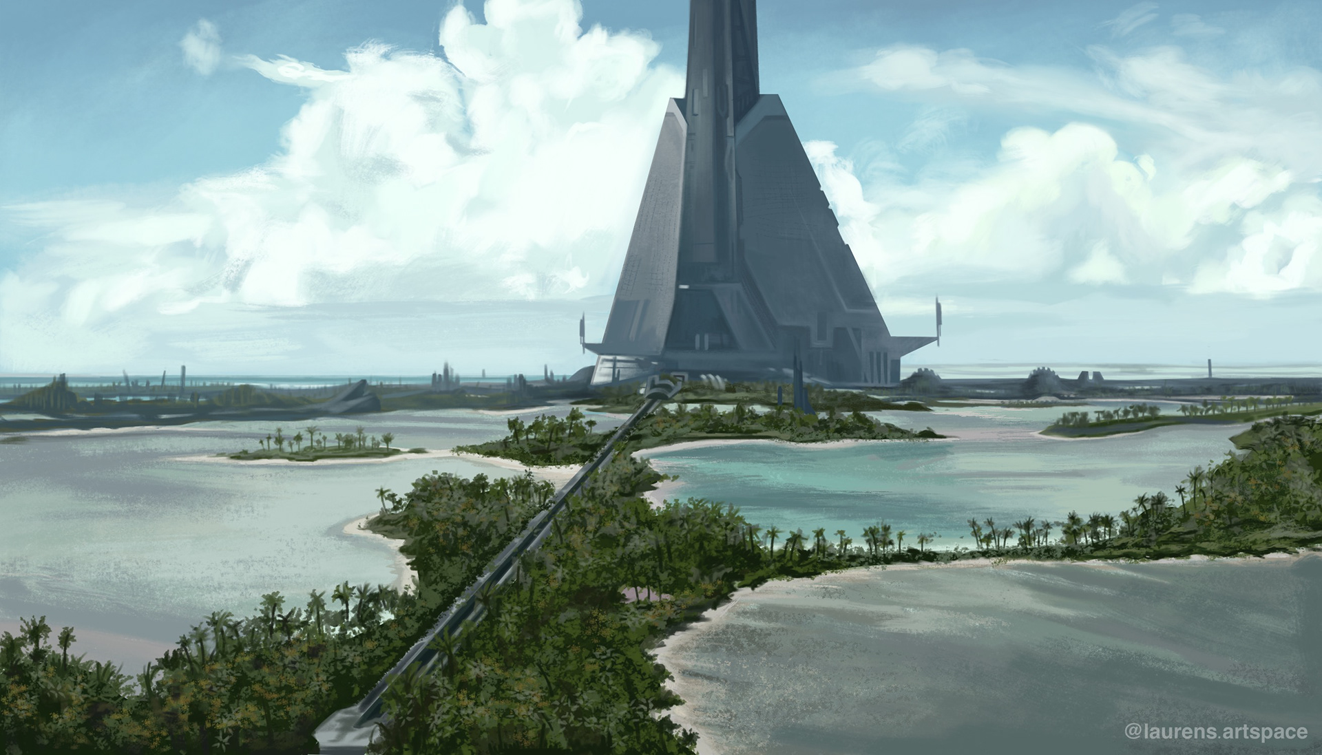 A sketchy study of the planet Scarif from the film "Rogue One." Painted in Procreate.